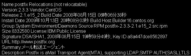 以下、インストール済みのpostfixパッケージの情報を表示するコマンドを実行した結果の一部である。このときに実行したと考えられるコマンドとして適切なものは?