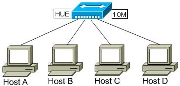 ハブに接続された4台のホストがあります。ホストAは次のどの帯域幅で通信することが可能か?
