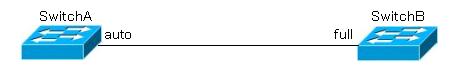 SwitchA側は半二重で、SwitchB側からは全二重になる
