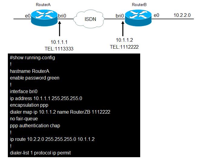 図のような2台のルータ間で、ISDN BRI接続をしましたが、うまく接続することができません。