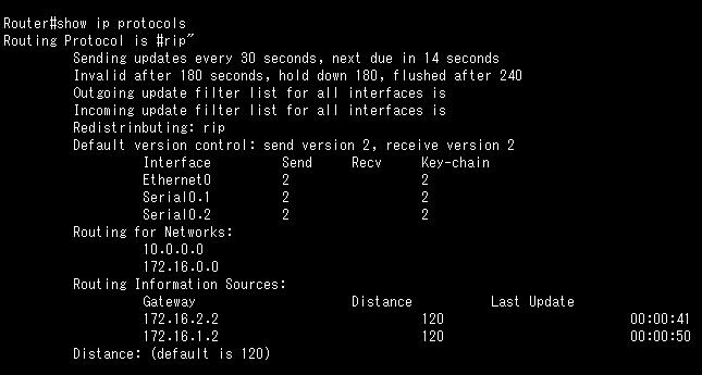 次の出力を参照し、このルータでRIPを設定するときに使用したコマンドはどれ?